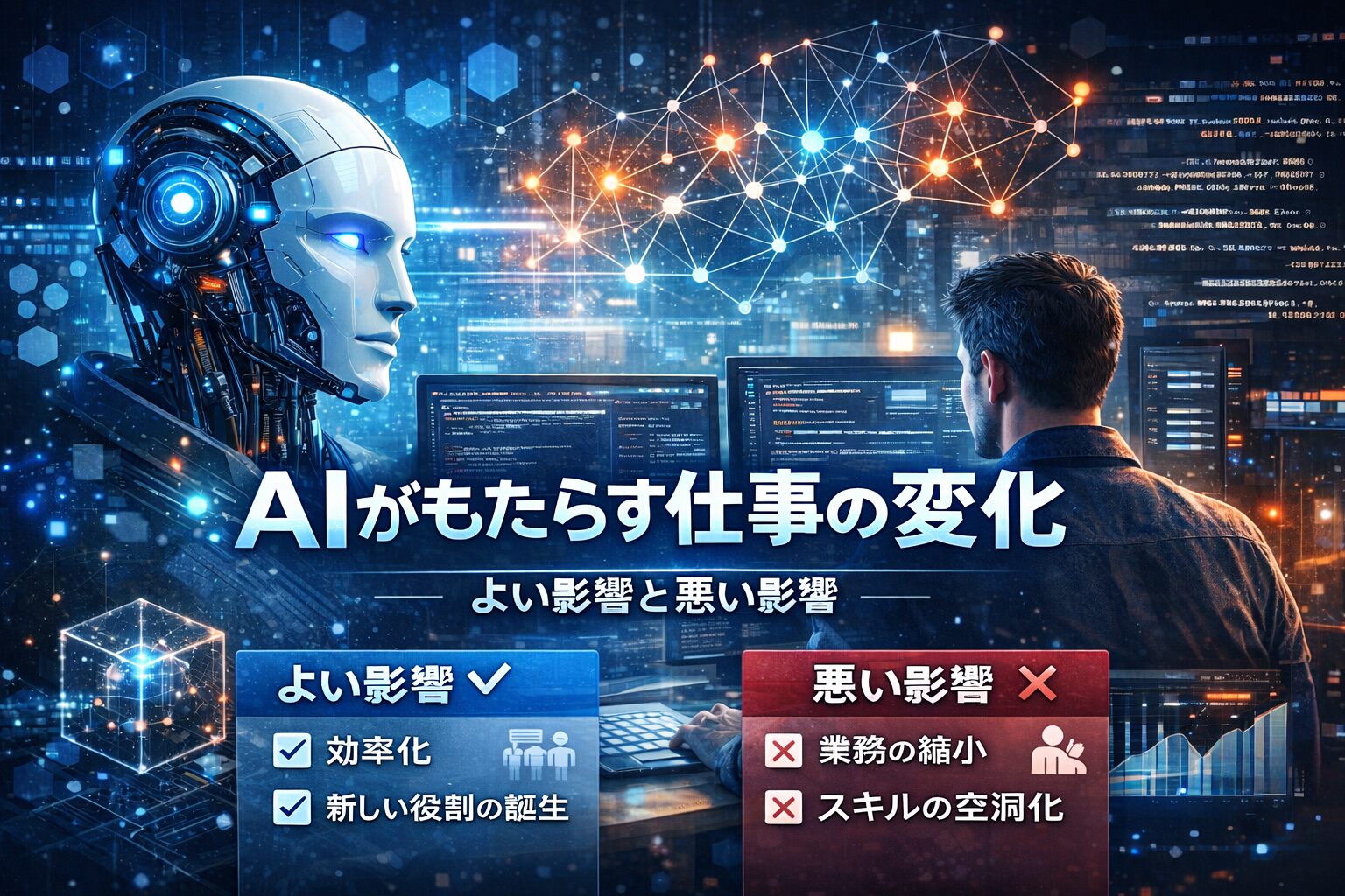 本記事では、AIが仕事にもたらすよい影響と悪い影響を冷静に整理し、私たちはどう向き合うべきかを考えます。