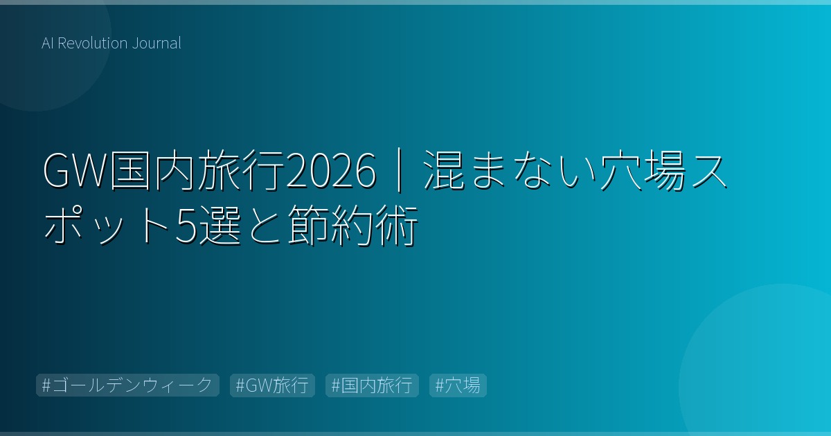 有名観光地を避けて穴場エリアを選ぶだけで、GW旅行のストレスは激減します。今回紹介した5エリアはどこもアクセスが良く・コスパが高く・旅の満足度が高い場所ばかり。宿の予約だけは今すぐ動くことが成功の鍵です。2026年のゴールデンウィーク、混雑知らずの快適な旅を楽しんでください。